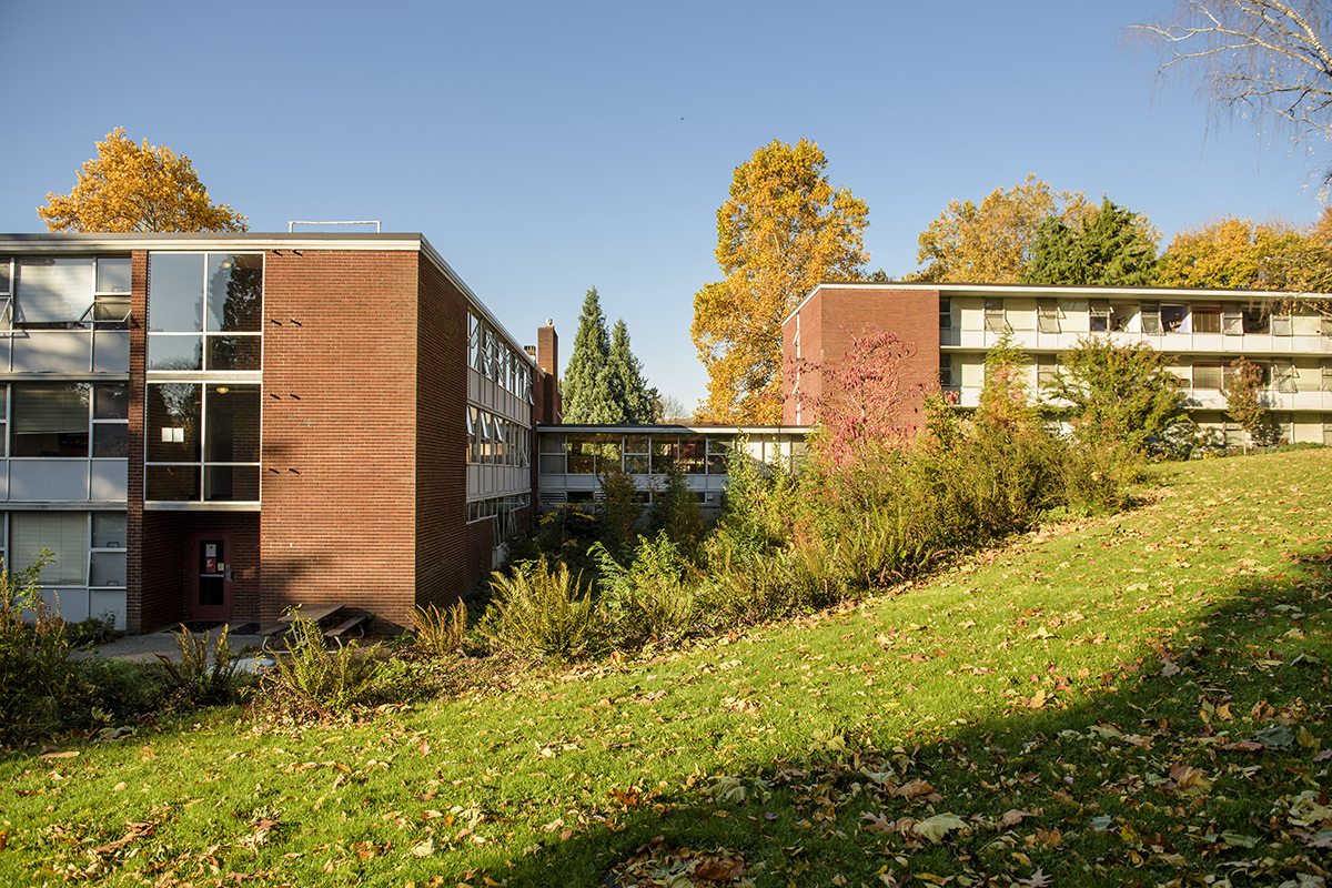 Named after former Reed presidents, these residence halls are in the southwest corner of campus; they all have spacious rooms with large windows that provide plenty of light in all seasons. Each of these 1950s brutalist-style buildings has three floors, most of which have large lounges with partial or full kitchens.
