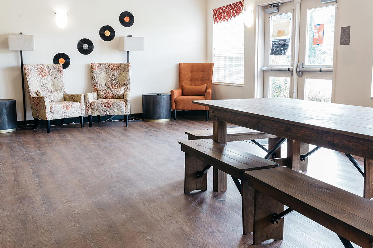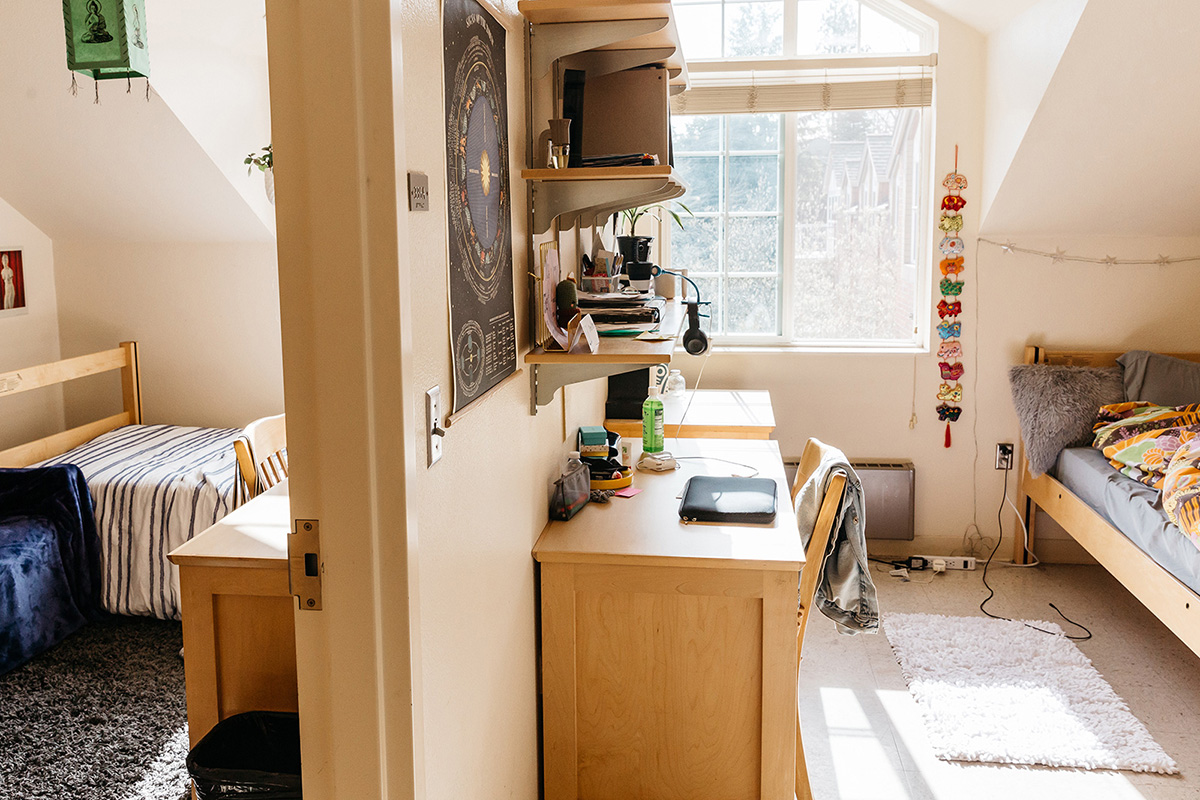 Naito Hall and Sullivan Hall have kitchens, common areas, and great views of the Portland west hills. Each floor is divided into two wings, with approximately 15 students in each wing. These small communities have large lounges with full kitchens. All of the social rooms have outdoor balconies. The third-floor rooms in Naito have unobstructed views of downtown Portland.