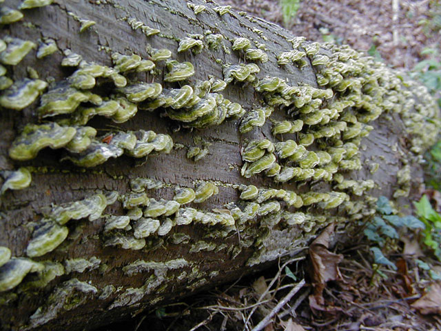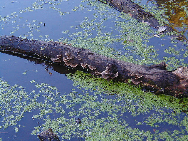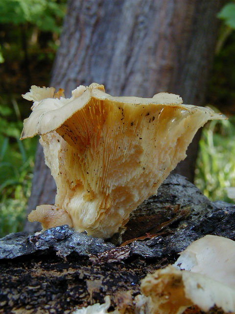 Large amounts of decaying wood in a moist environment with few disturbances make the Reed canyon a perfect place for the growth of fungi. On a walk through the canyon in the fall, you'll probably see shelf fungi growing on the fallen trees and mushrooms popping up through the leaves on the forest floor. Sometimes there's even a stunning display of sulphur shelf (Laetiporus gilbertsonii).