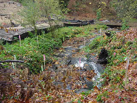 Over the summer and fall of 2001, Reed College constructed a fish ladder to re-establish connectivity between Reed Lake and the lower creek for resident and anadromous fish.