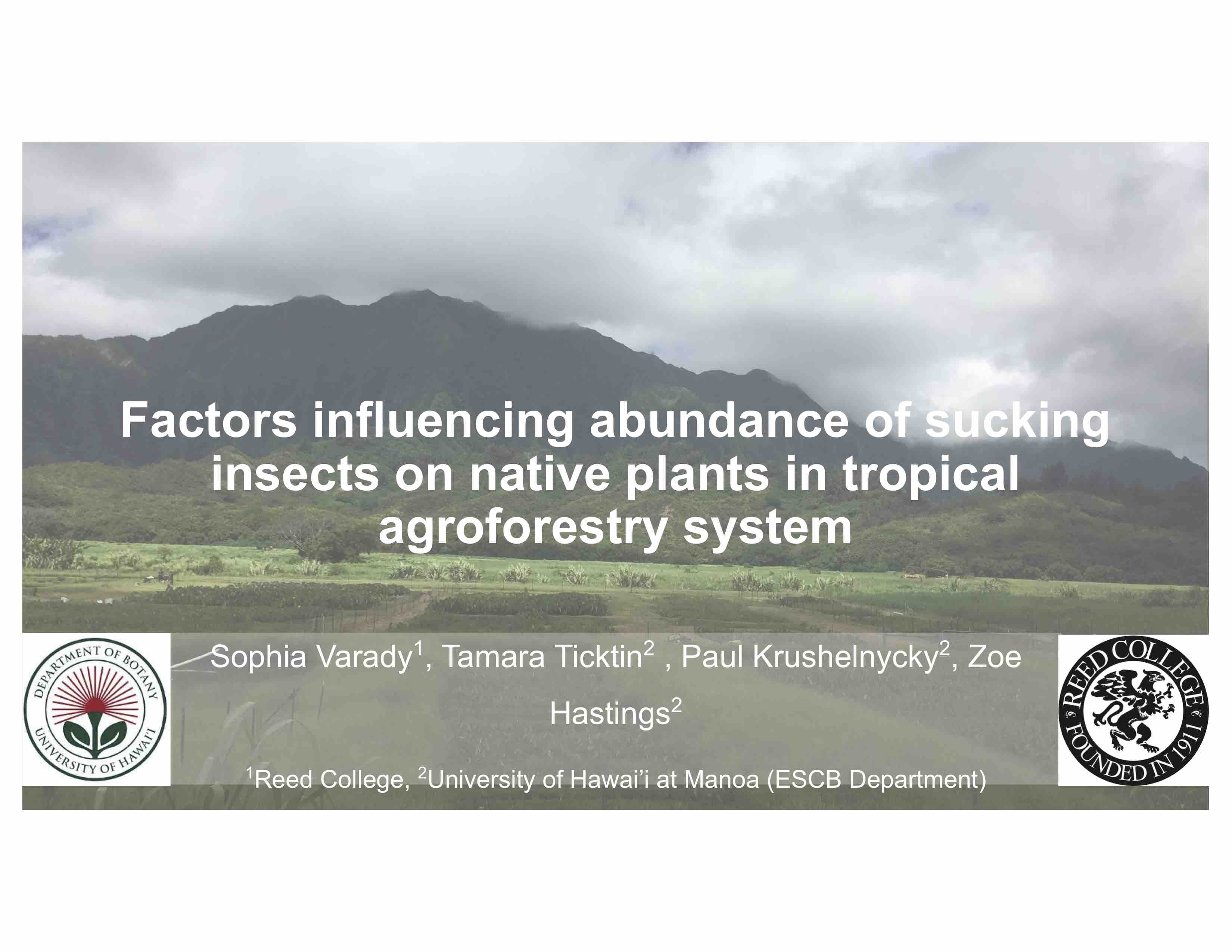 Summer 2019 Paul Siegel ESSE: Sophia Varady, "Factors Influencing Abundance of Sucking Insects on Native Plants in Tropical Agroforesty Systems."