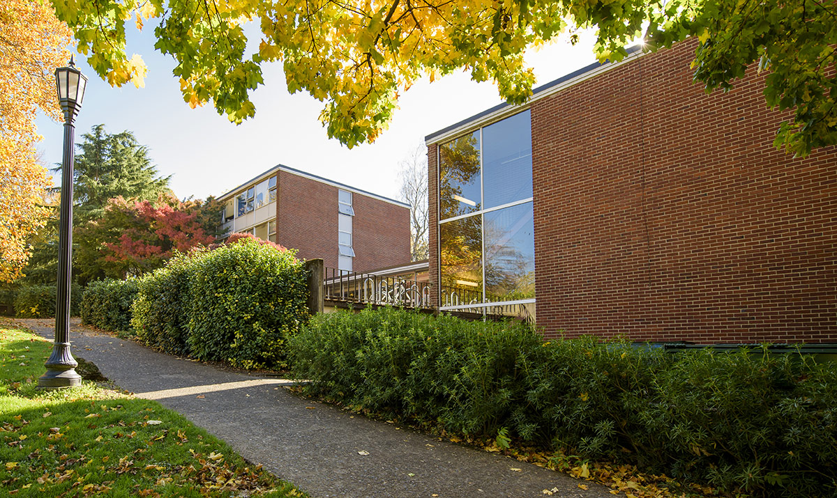 Built in 1954-55, these three residence halls were once two residence halls: Foster-Scholz, a men's residence hall, and MacNaughton, a women's residence hall. Each was named for Reed presidents; Foster-Scholz for the first two presidents, William T. Foster and Richard F. Scholz, and for Ernest B. MacNaughton, who was president from 1948 to 1952. These co-ed residence halls have divided double rooms, in which roommates have their own spaces and a door between them.