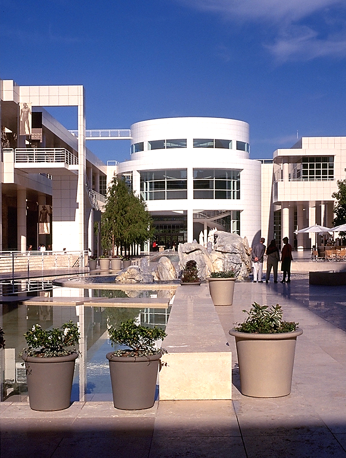 Museum courtyard axis, position 2 ( this design axis passes through the center of this travertine bench )