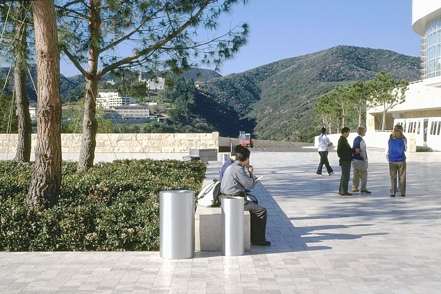 Museum courtyard axis, position 6 (this design axis passes through the center of this travertine bench on the arrival plaza)