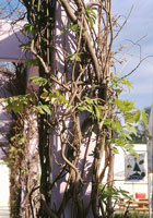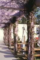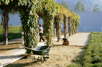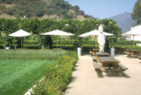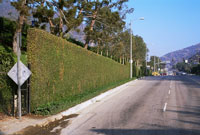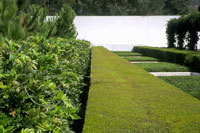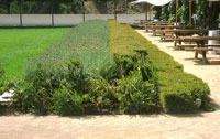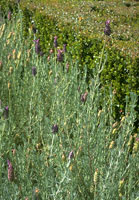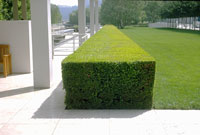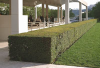 Myrtle hedge (Myrtus communis) beside lower tram station, fescue