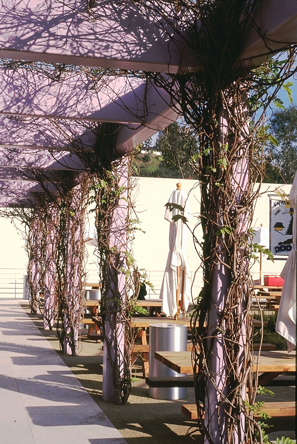 white blossoming Wisteria, off-season,covering purple steel arbor |