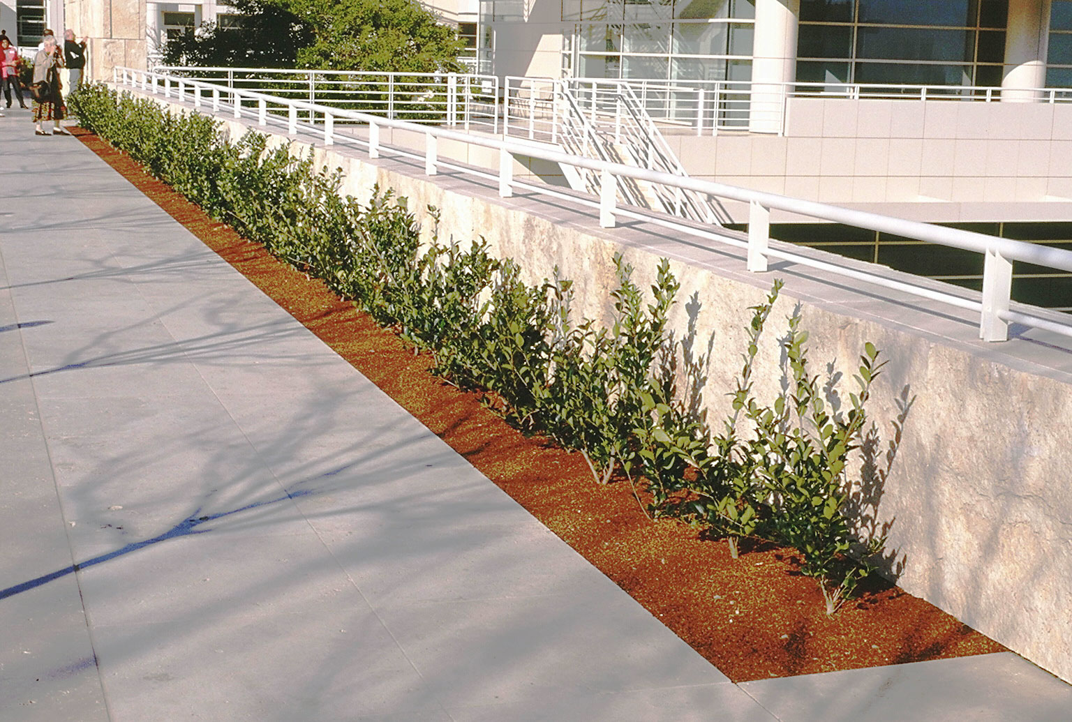 Wax Leaf Privet (Ligustrum japonicum) beside north-south walkway, upper level