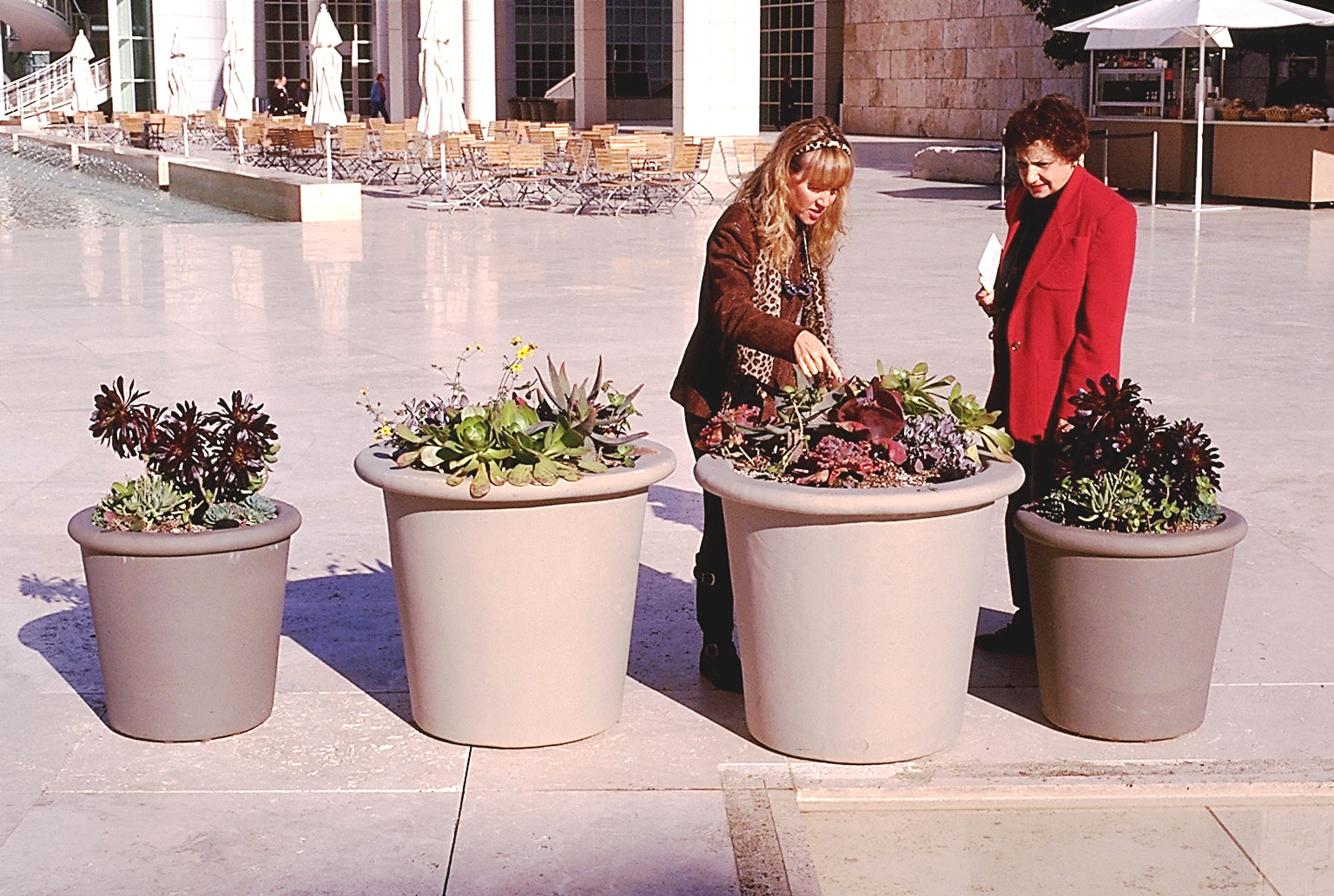 vertical planters beside pool, Museum courtyard |