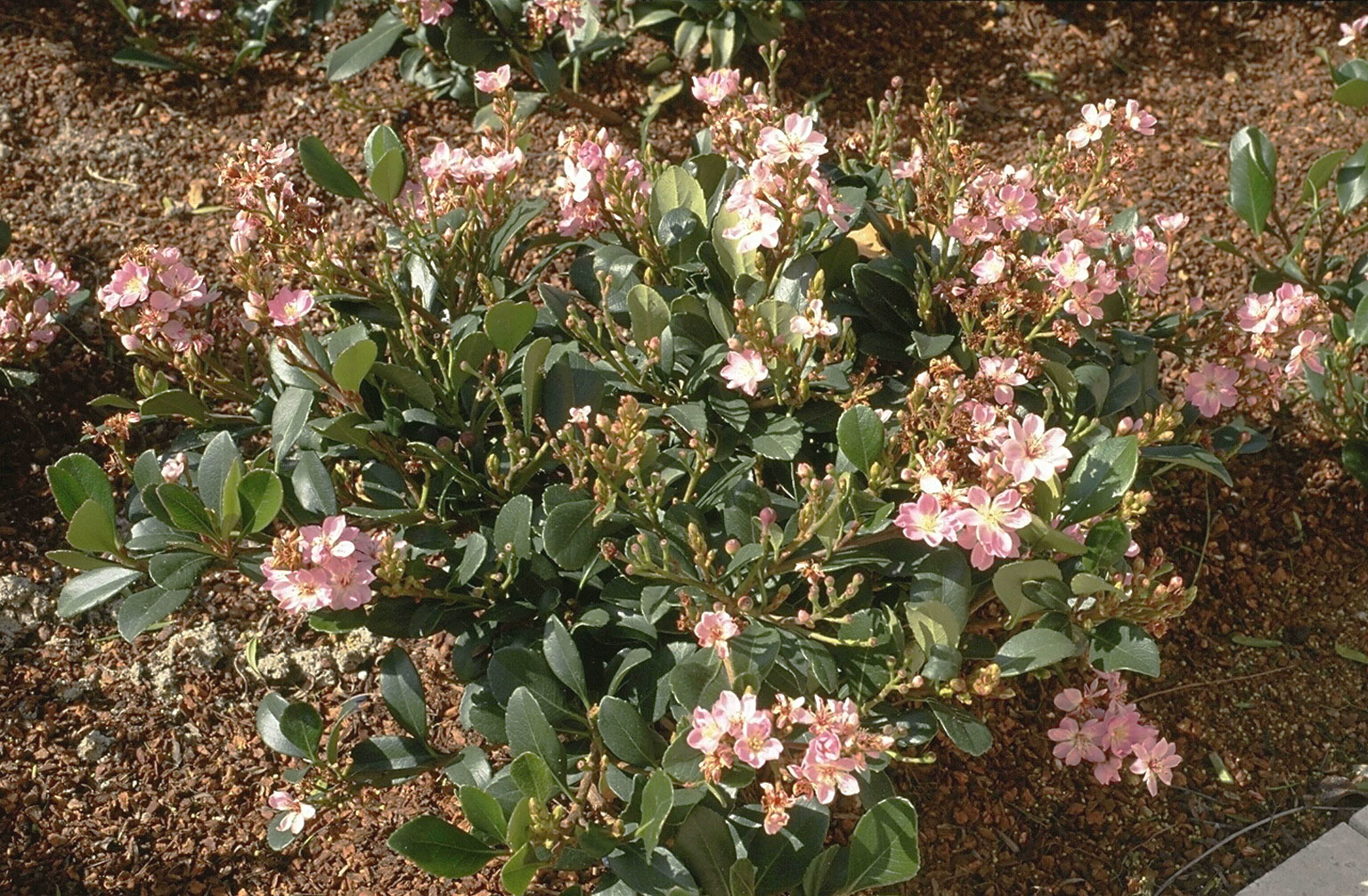 Indian Hawthorne (Rapheolepis indica) on plaza in front of Research Institute |