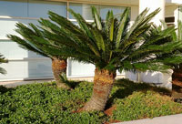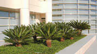 Sago Palms on East Building terrace, Scaveola suavoelens as