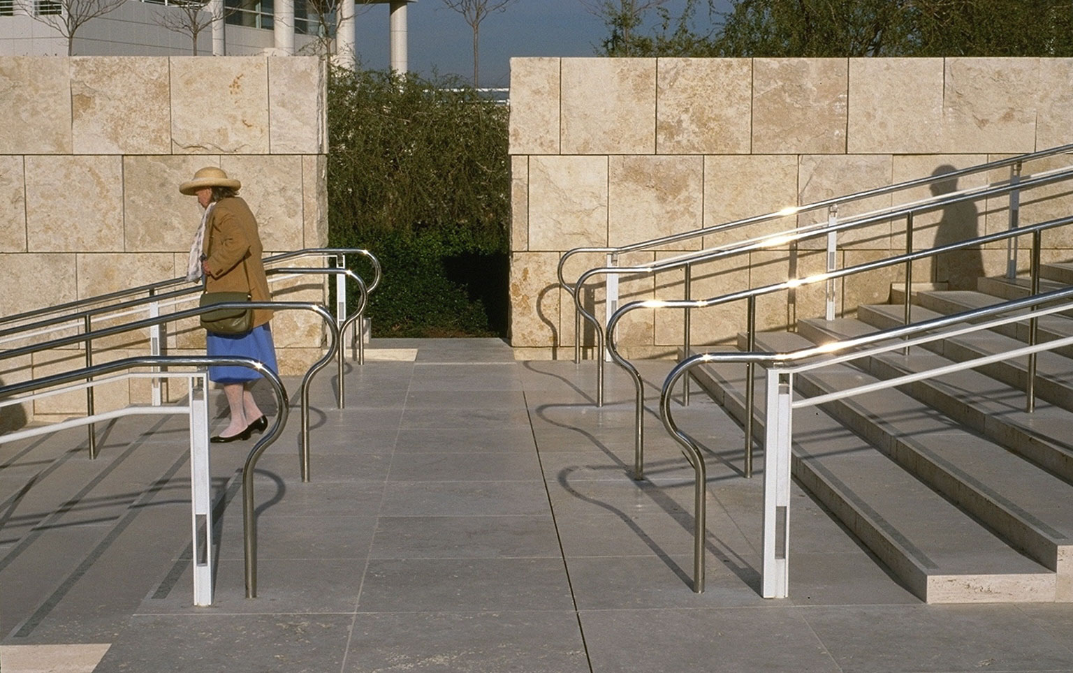 grand stairway, upper landing with small bridge across stepped watercourse |