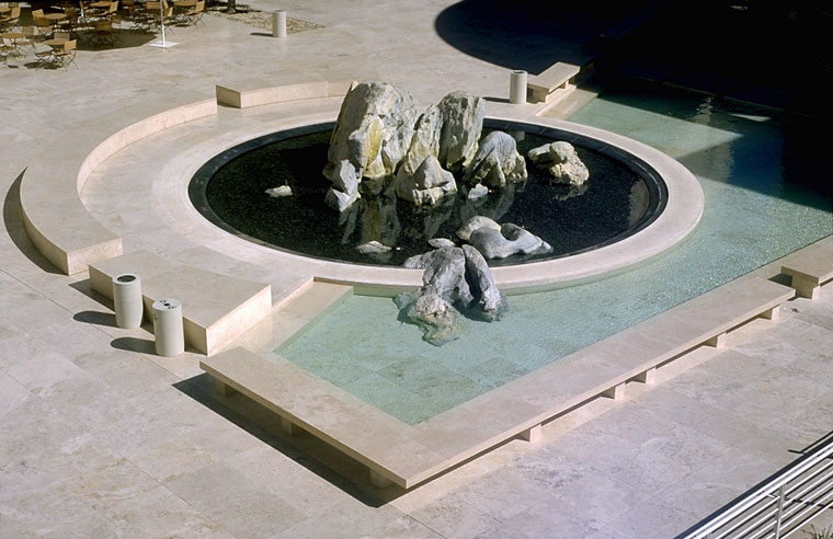Museum courtyard, central fountain and shallow pool flush with paving |