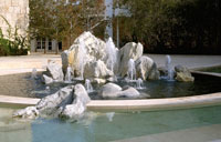 Museum courtyard, central fountain with stones from