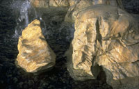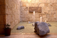 open air pool with fountain and rocks,