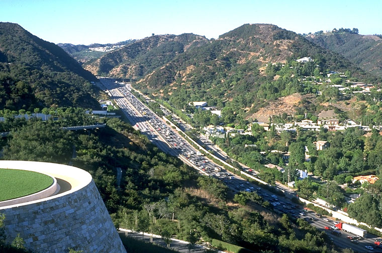 looking past helipad to San Diego Freeway and Sepulveda Pass |