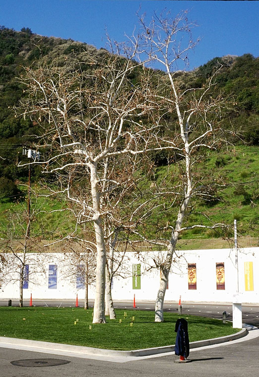 Native Sycamore trees (Platenus racemosa) inside main entrance to Getty Center |