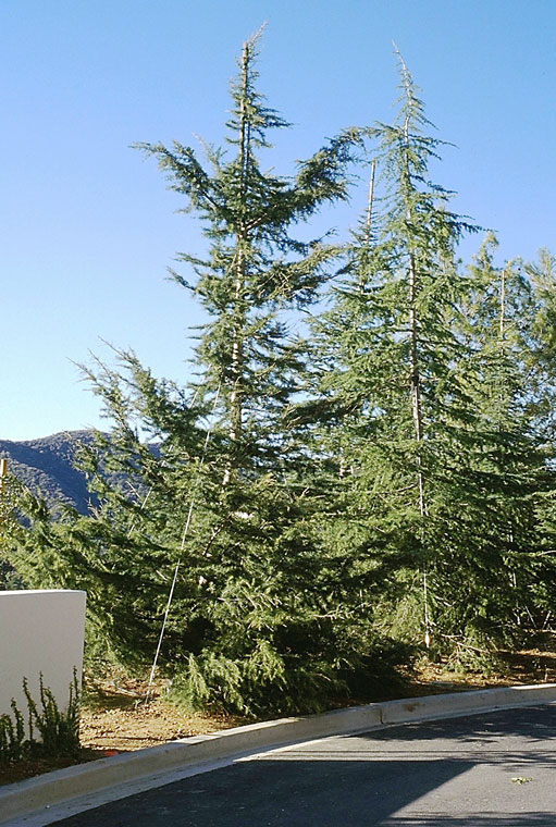 Deodar Cedar trees (Cedrus deodora) planted beside service road |