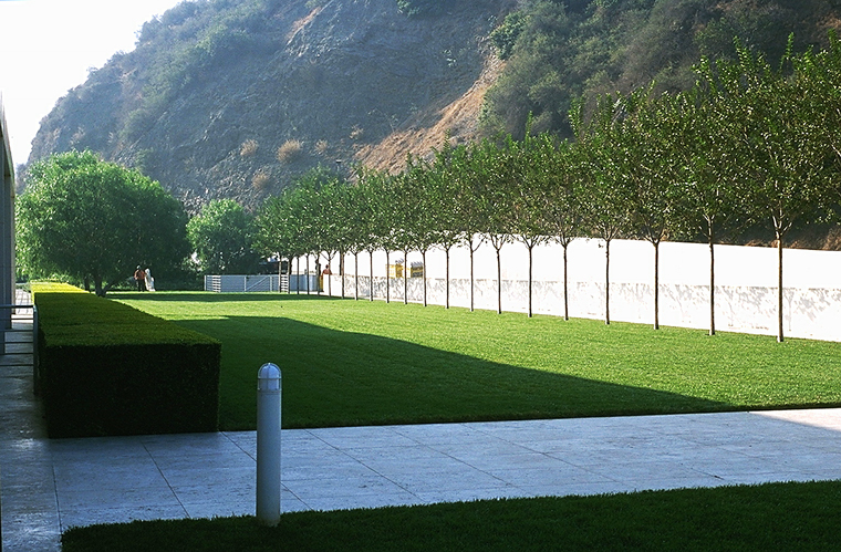 looking southwest over lawn, tram station at left |