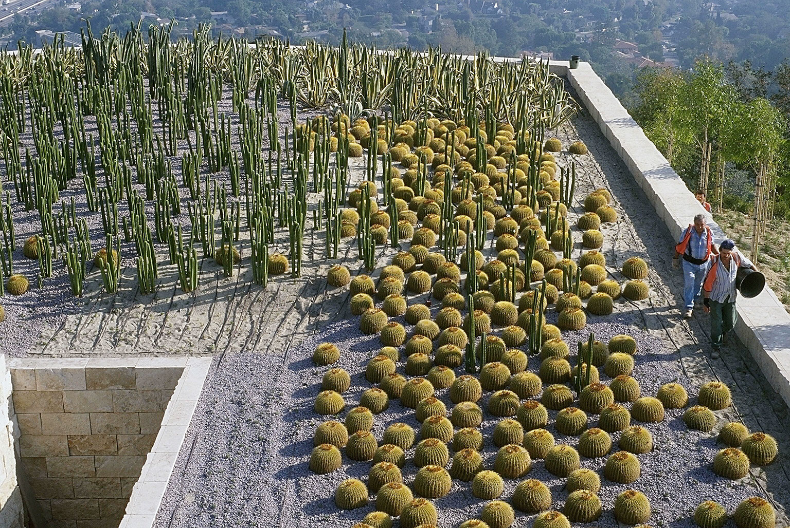 cactus promontory, spreading gravel over irrigation hose |