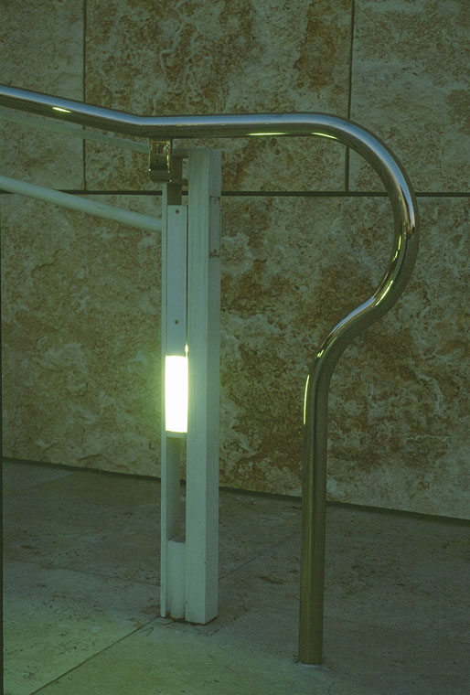 grand stiarway railing, inset lighting |