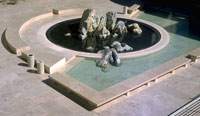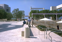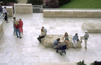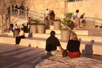 risers in front of stairs to Museum courtyard, late afternoon sun