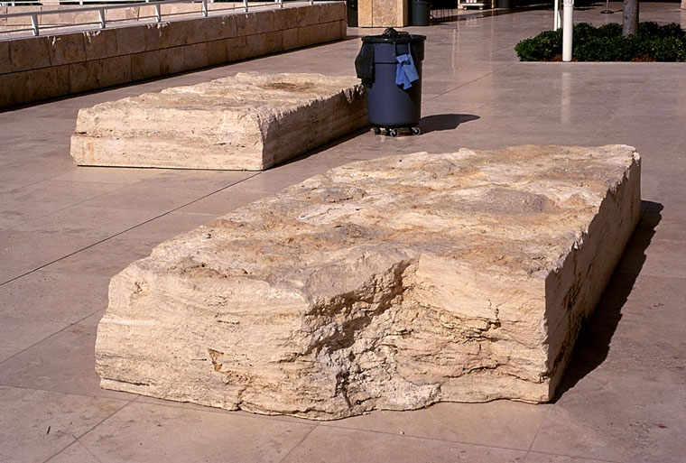 same travertine benches; benches have weathered in bottom of quarry since cut in nineteenth century |