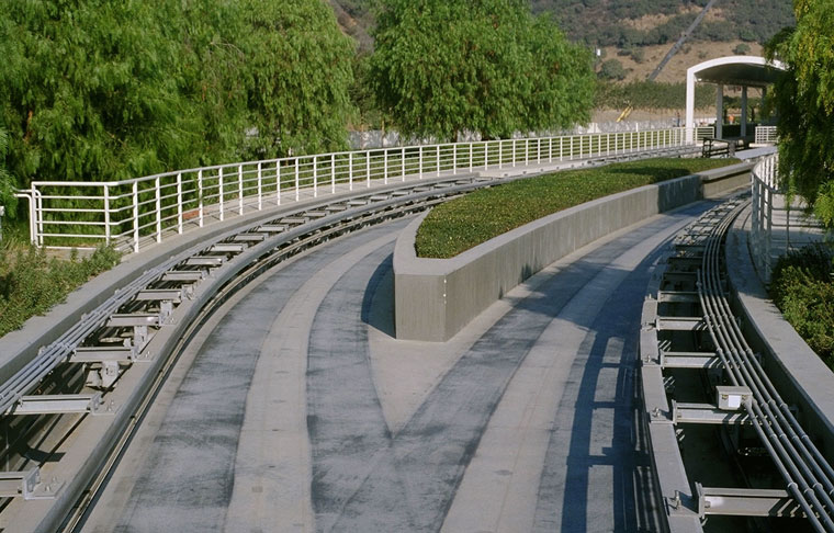 tramway divides, the two trams track on opposite sides of the tramway |