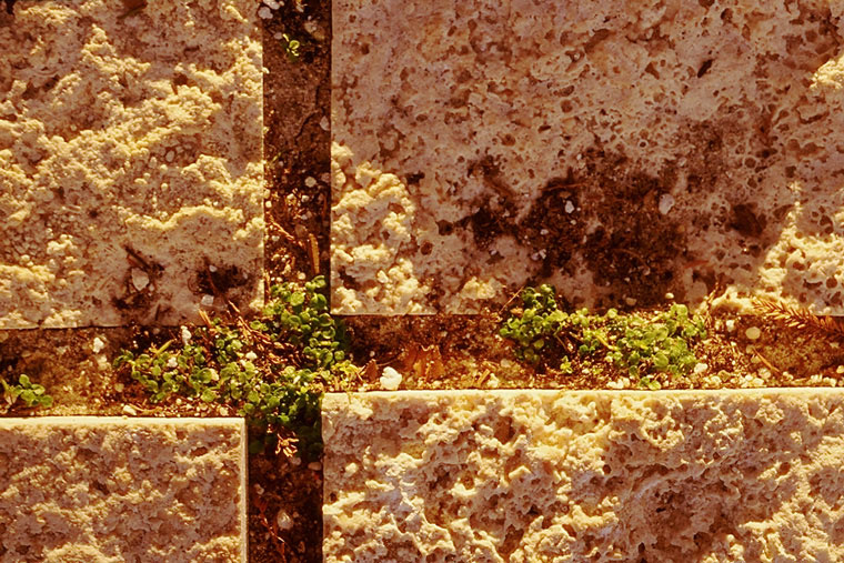 small square pavers with tinyJewel Mint of Corsica planted between |