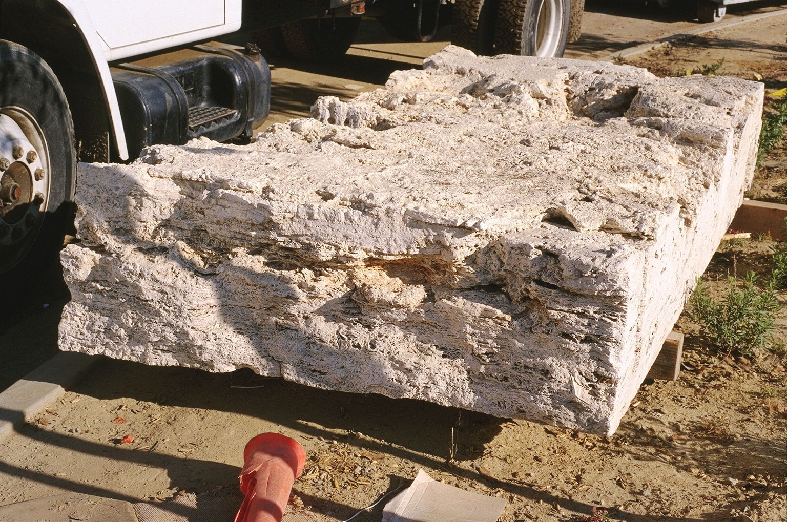 moving travertine bench,weathered in bottom of quarry since cut in nineteenth century |