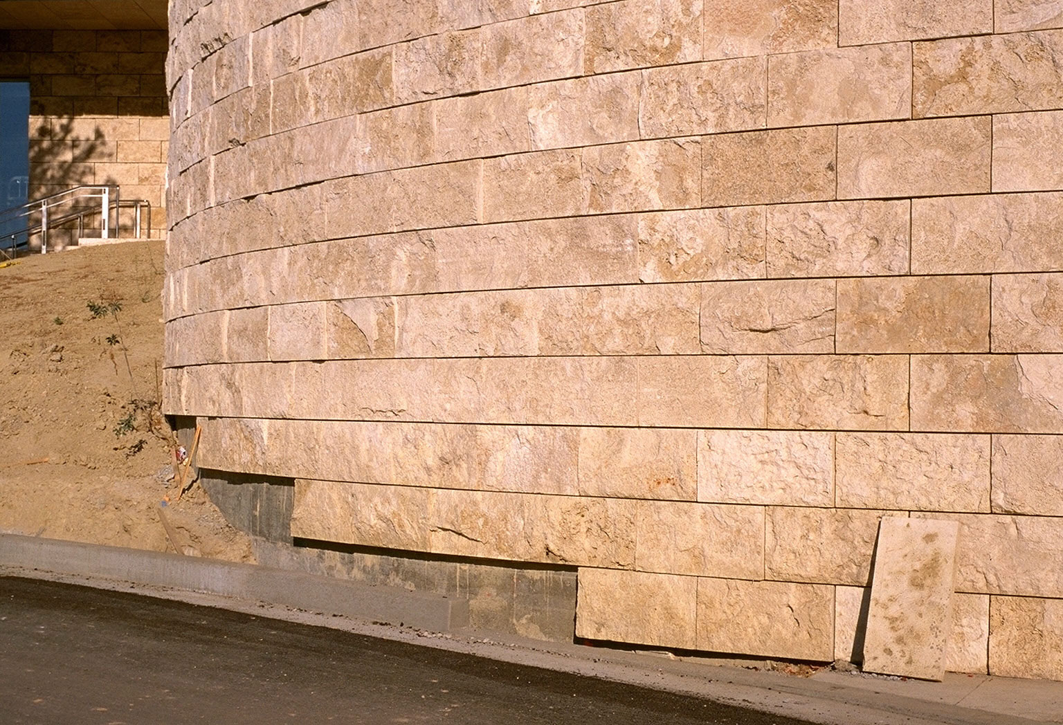 travertine panels at base of Cafeteria / Restaurant, construction |