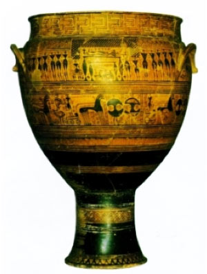 Geometric vase (krater) with prothesis and funeral procession, 8th century BCE. New York, Metropolitan museum. Reproduced as item 13, p. 33, in Osborne Archaic and Classical Greek Art.