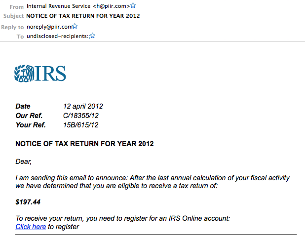 It's tax season and the phishers are trying to take more of your money! Do not be fooled and don't click on the link in the message.