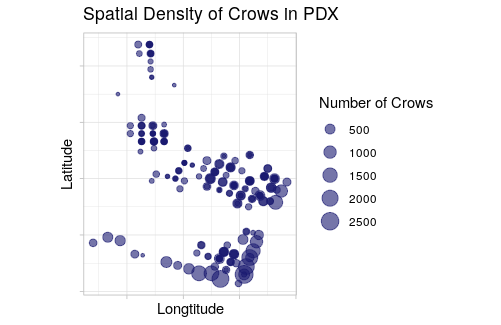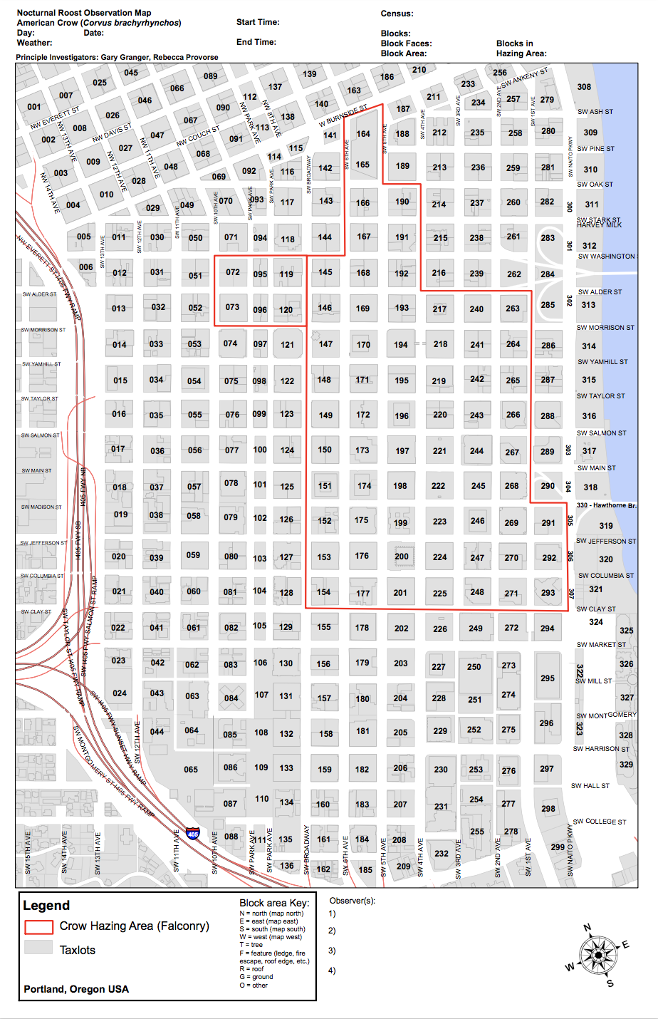 These events motivated the Portland Crow Roost Community Project to investigate whether the marked locations of Portland are reflective of the hazing attempts to transport the crows. By courtesy of this community project, a census of crow roosts has documented the location and magnitude of roosts weekly for the past three years.
