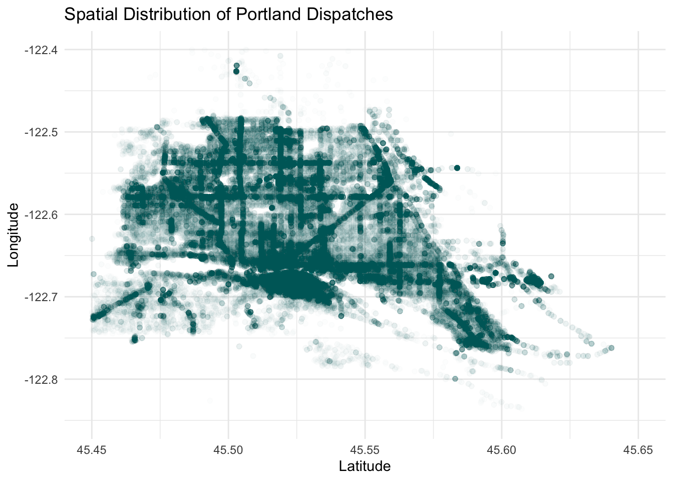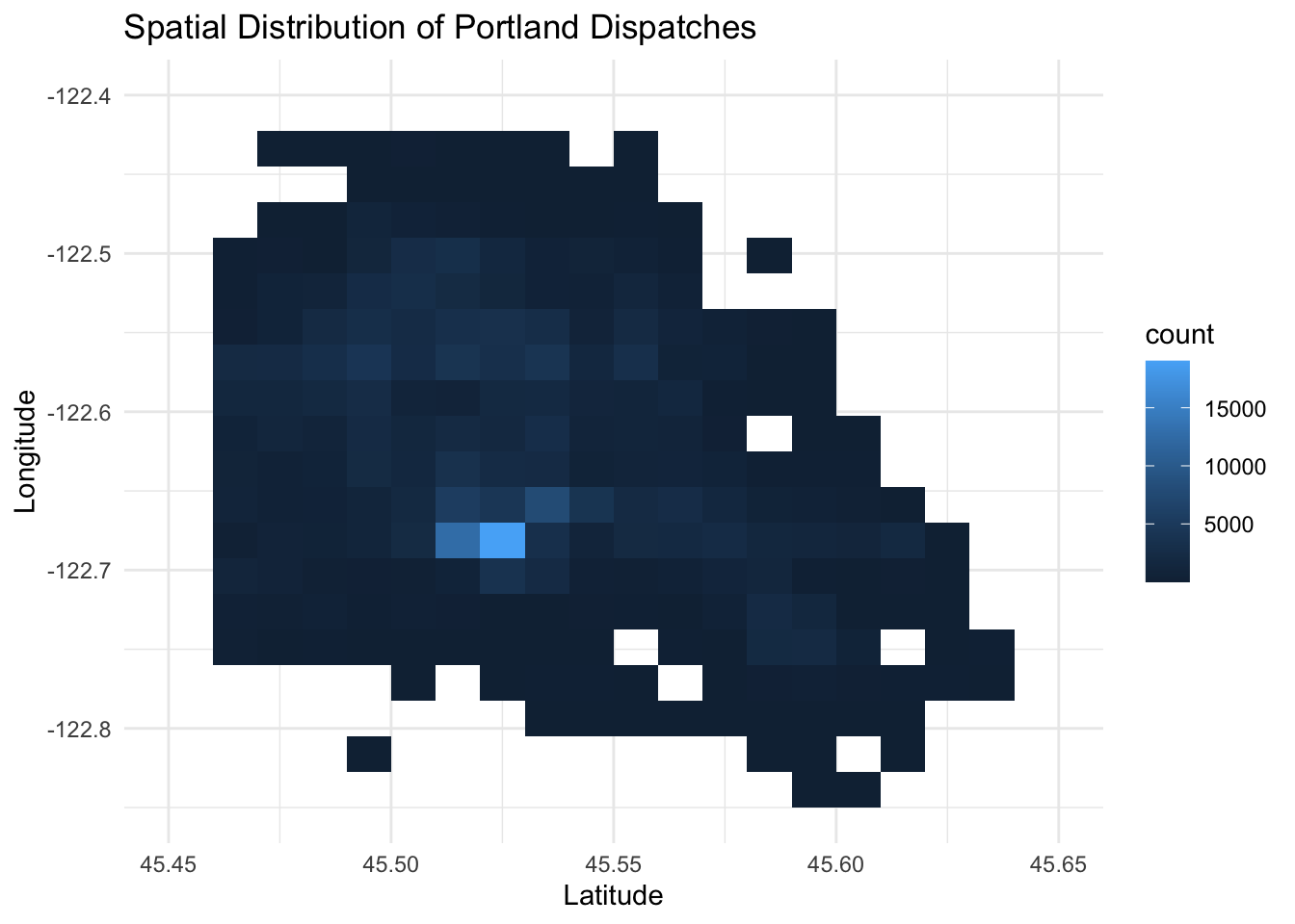 ggtitle("Spatial Distribution of Portland Dispatches") +