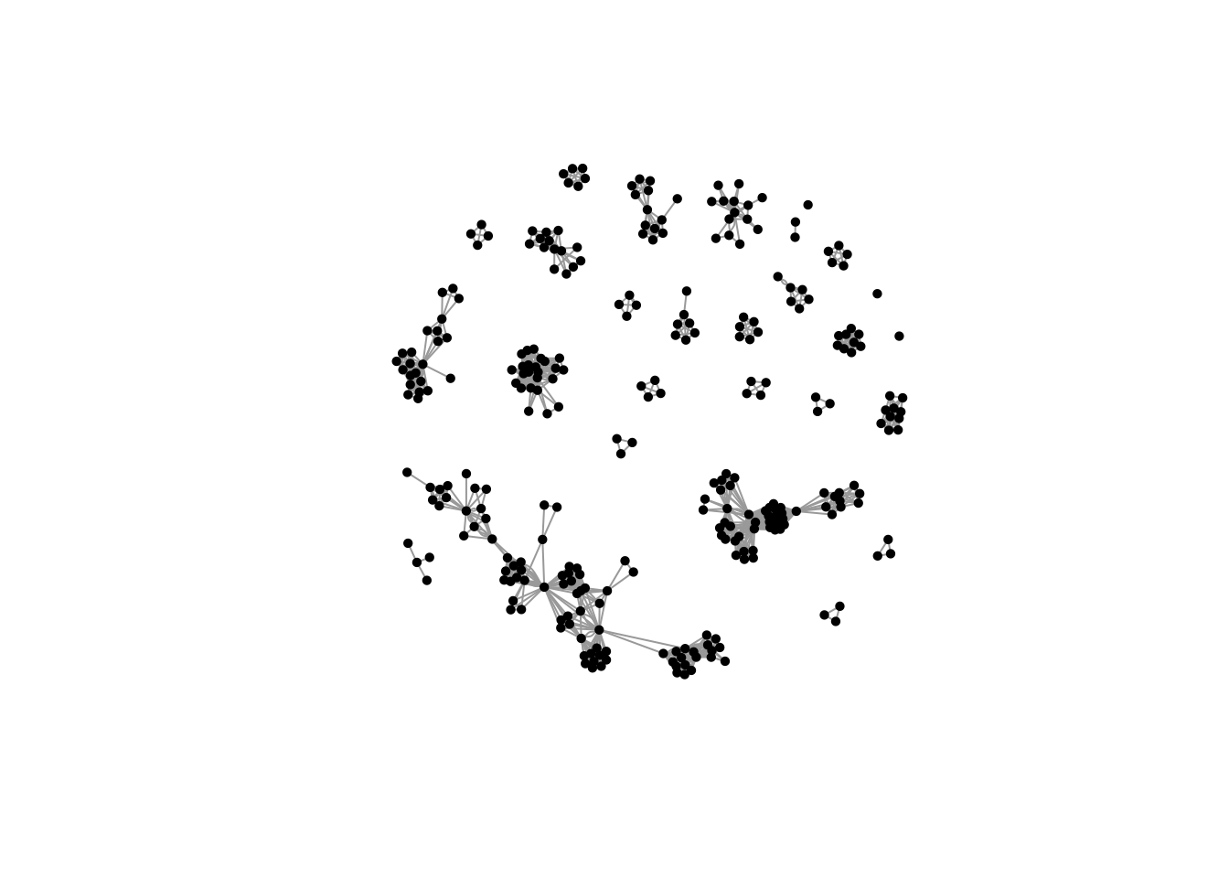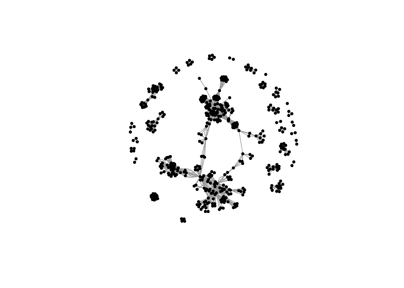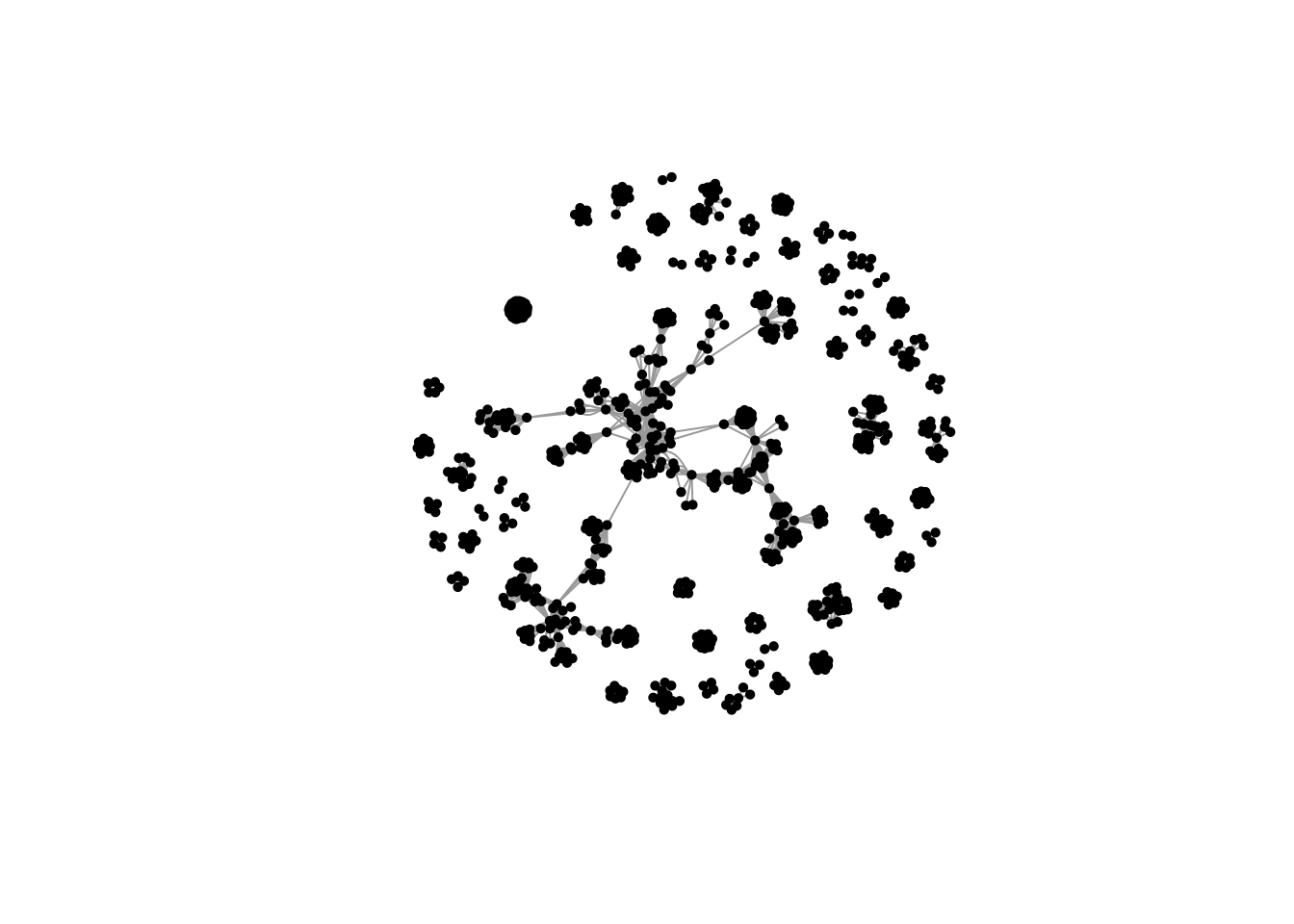 plot(scienceNetwork_axolotl, vertex.color = "black", vertex.size = 3, vertex.label = "")