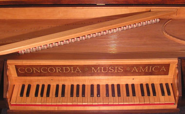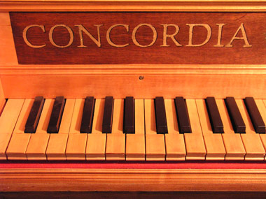 Built and donated to Reed by alumna Chloe Lewis, with painting by Reed alumna Elecia Beebe, this virginal is modeled after those used in England and the Netherlands, ca. 1600, and is especially suited for music by Dowland, Bull, Byrd and Sweelinck. Although at modern pitch (A=440), we tune it in historic meantone temperament.