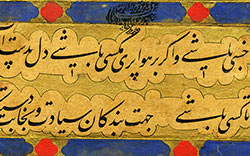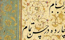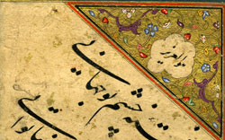 This is a form of writing in which the lettering is not horizontal but written at a 45 degree angle. It is usually used for writing a couplet or a few verses of poetry in the Nasta‘liq script.