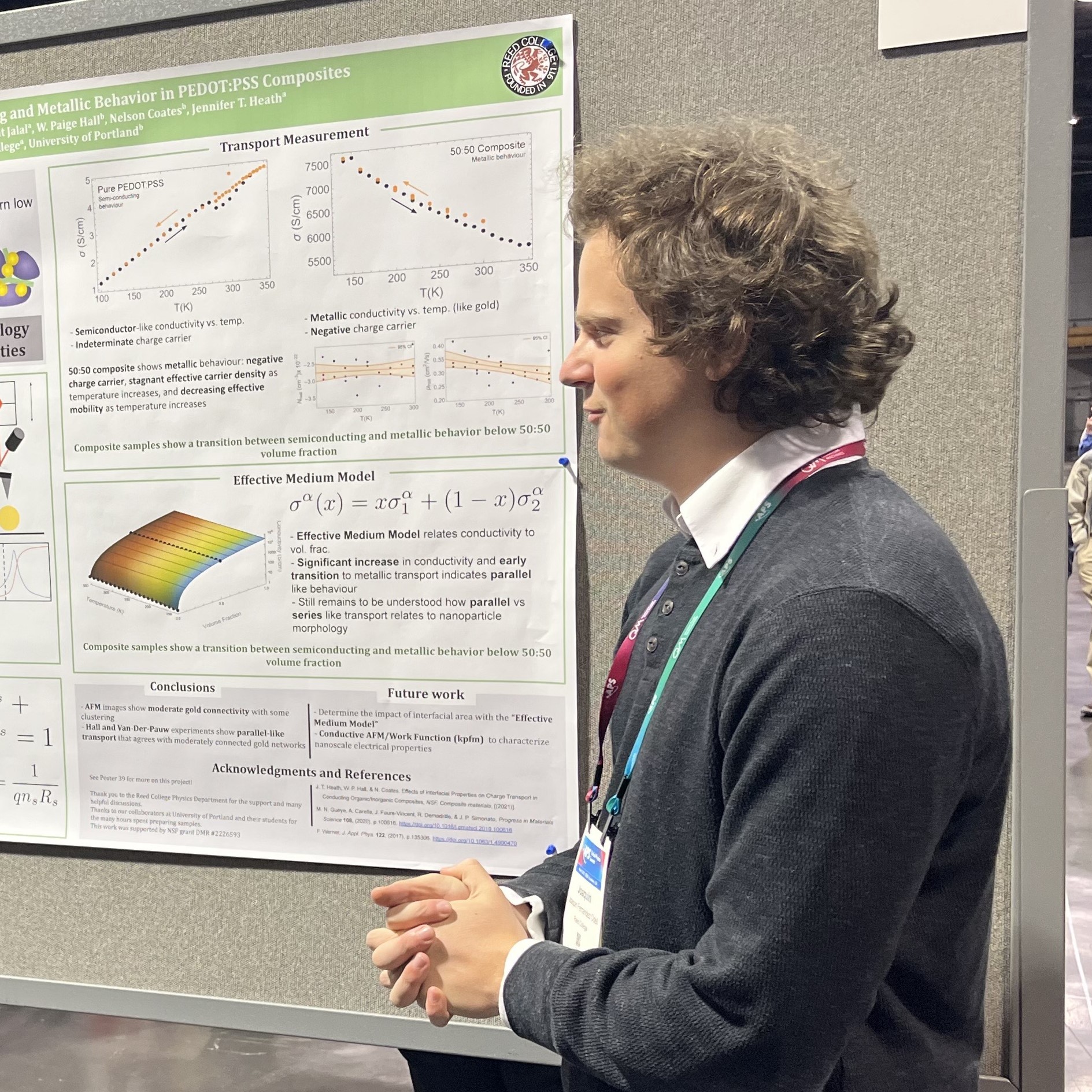 March, 2025. Joaquin presented, "Transition Between Semiconducting and Metallic Behavior in PEDOT:PSS Composites" at the American Physical Society March Meeting in Anaheim, CA. |