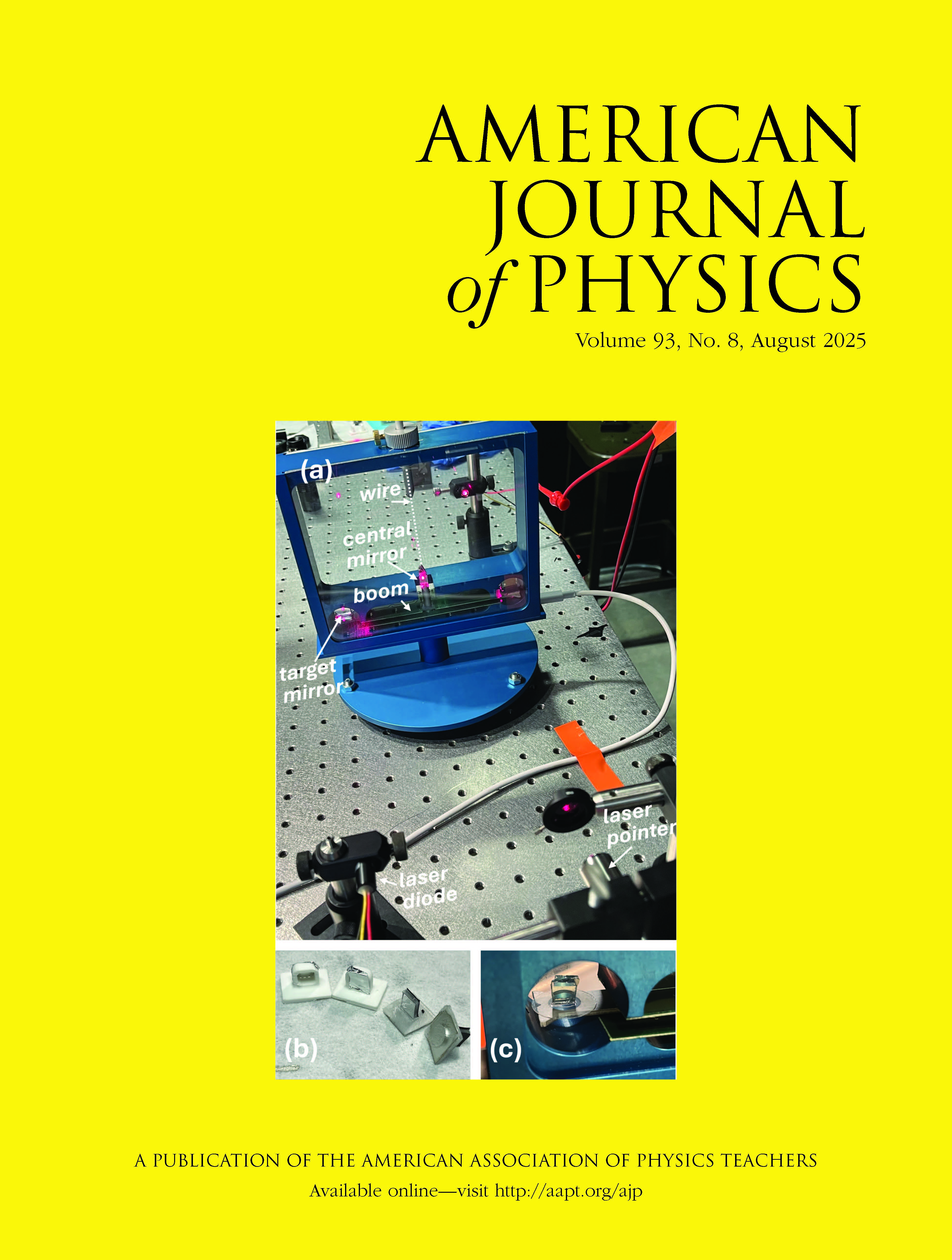 August, 2025. Our most recent article, "Measuring optical force with a torsion pendulum: a platform for independent student experimentation" was published in American Journal of Physics. This work was highlighted in a "SciLights" article and awarded the journal cover. Congrats to Leland, Zeke, and Anatalya, and thanks to the students who piloted this experiment in the advanced laboratory course. |