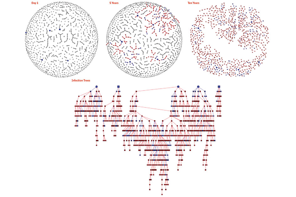 That may not sound like a big difference, but Morris’s research suggests that minor variations in sexual concurrence can lead to vast increases in overall transmission of HIV. The reasons are twofold. First, HIV is much more virulent in the early stages of infection, so the chance of transmitting the virus is higher in overlapping partnerships because the interval between sexual contact with different partners is considerably reduced. (No courtship or chocolates to slow things down.)