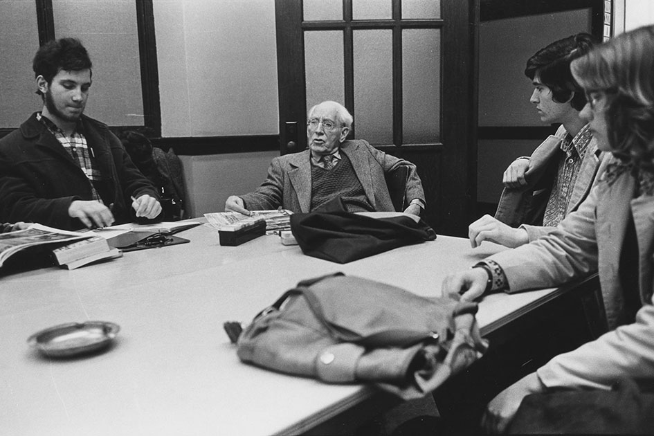“You had a problem that you asked students to pursue,” said longtime professor Marvin Levich [philosophy 1953–94], “and then you talked at it as if everyone in that class were a professional, as though they were your equals. That was a method of teaching that made some people uncomfortable, but in a lot of cases it was amazing how—if you expected the best from the students—how many of them would, in one way or another, fulfill your expectation. I thought that any other method of teaching was coddling the students.”