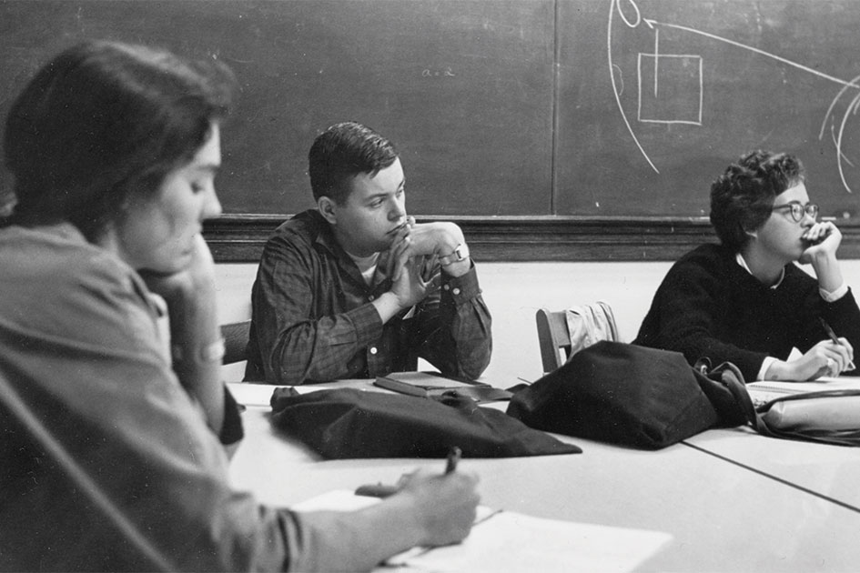 “We had guys who were more brilliant than the professors,” said Abe Bergman ’54, “but they flunked out. The fact that the professors knew you and you couldn’t BS, that alone was a discipline in critical thinking, of learning to speak your mind, of learning to question everything. ‘What do you mean?’ ‘Why do you say that?’ ‘What’s your evidence for that?’ Those kinds of questions were constantly facing you, and you had to answer them.”