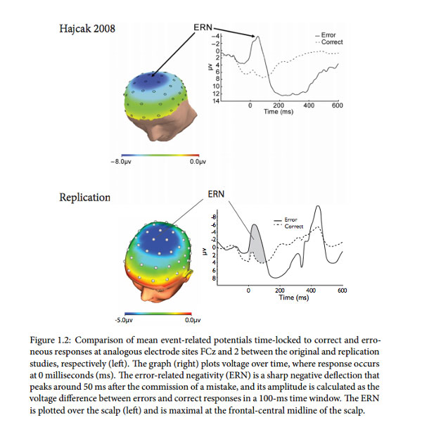 For her senior thesis, Melissa replicated a cognitive neuroscience experiment relating to the “error-related negativity response”—a brainwave that corresponds to the feeling you get when suddenly realize you’ve locked the keys in the car just as you’re slamming the door shut (colloquially known as the “Oh, shit” response).