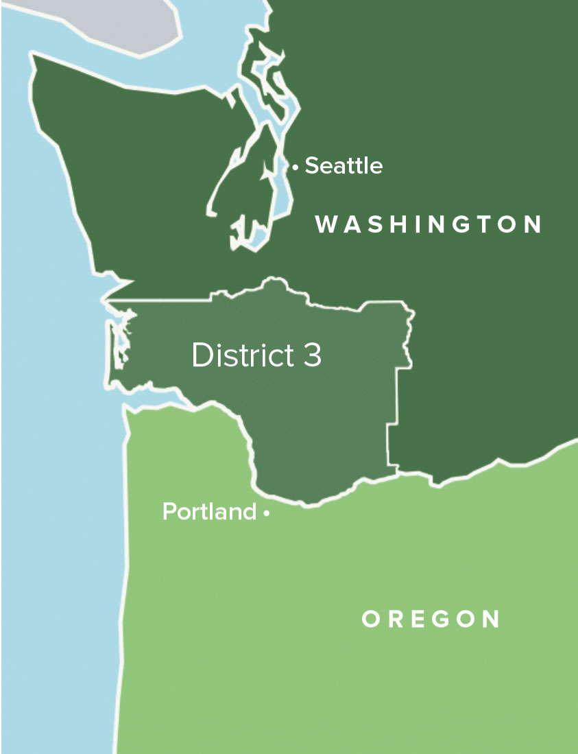 Her bright green pin pops out to designate her as a member of Congress. Otherwise, she’s unadorned. Wearing a blue oxford shirt with the sleeves rolled up, jeans, and Blundstone boots, she looks casual enough that she could go from the district office to a timber conference. Likely that’s because, sometimes, she does, in addition to petting cows at creameries and donning a hood to watch students learn to weld (all of which you can witness on her Twitter feed). When not in Washington, D.C., she spends her days in her home state visiting local facilities, meeting with constituents, and engaging in listening sessions like these. “Every day that I don’t have a vote in D.C., I’m in the district,” she told me over the phone prior to our day together. “I’m spending one-on-one time with community leaders, local electeds, and business owners. And I think that’s really critical. You have to know what’s going on in your district.”