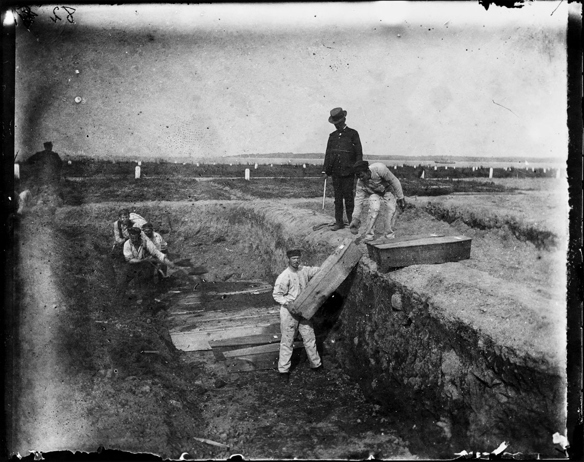 An artist and photographer, Melinda had been documenting the AIDS crisis. She was interested in publishing a photography book documenting Hart Island as a place that had been unchanged for over a century. She wanted to pay homage to the photographs that journalist and social activist Jacob Riis had taken for his book How the Other Half Lives, and she invited photographer Joel Sternfeld, renowned for his large-format photographs chronicling roadside American culture, to accompany her. (At that time, academics and members of the press were allowed to visit Hart Island; Melinda and Sternfeld were affiliated with universities.)