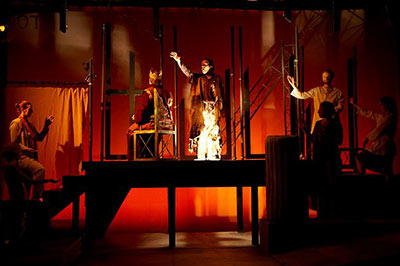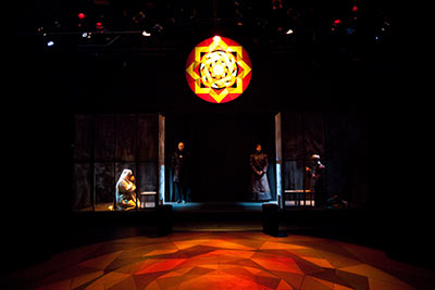 Measure for Measure, with Isabella and Angelo at prayer, the Duke and the Provost standing guard (© Orin Zyvan)