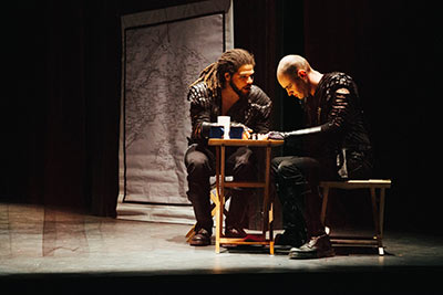Cassius tempts Brutus in Julius Caesar (© Stacia Torborg)
