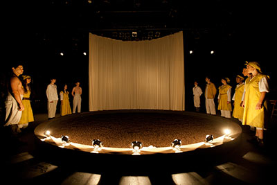 Ensemble gathering to begin Our Country's Good by Timberlake Wertenbaker (© Darryl James)