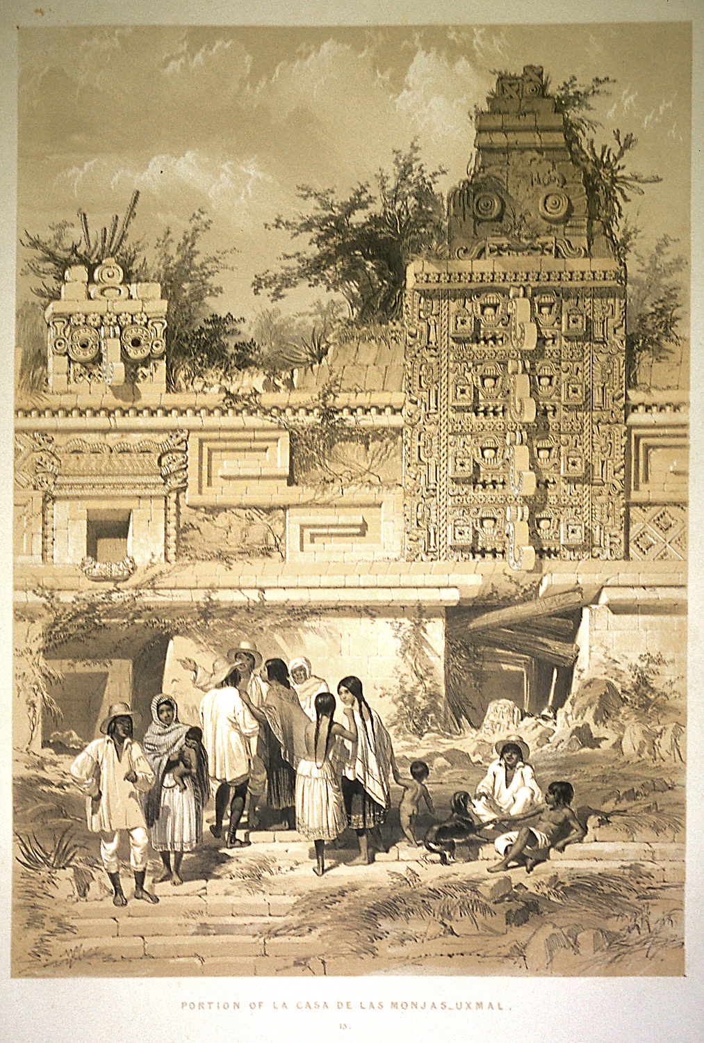 "15. Portion of La Casa de las Monjas. Uxmal."     1844  (tinted lithographic plate)