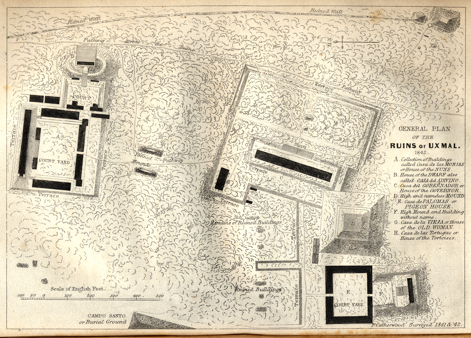 Vol.I, facing p.165: "General Plan of the Ruins of Uxmal, 1842 / F. Catherwood Surveyed 1841 & '42".   1843